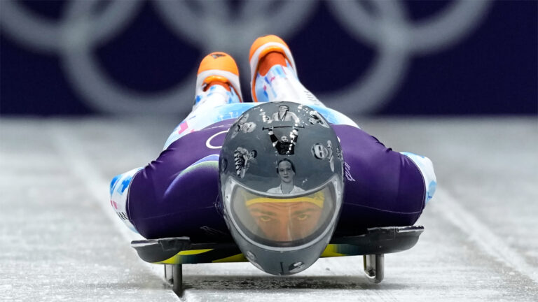 Ukraine's Vladyslav Heraskevych starts for a men's skeleton training session at the 2026 Winter Olympics, in Cortina d'Ampezzo, Italy, Wednesday, Feb. 11, 2026. Foto: SITA/AP