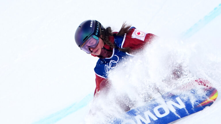 Canada's Felicity Geremia falls during the women's snowboarding halfpipe qualifications at the 2026 Winter Olympics, in Livigno, Italy, Wednesday, Feb. 11, 2026. Foto: SITA/AP