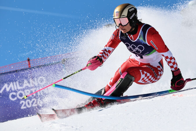 Croatia's Zrinka Ljutic speeds down the course during an alpine ski, women's slalom race, at the 2026 Winter Olympics, in Cortina d'Ampezzo, Italy, Wednesday, Feb. 18, 2026. Foto: SITA/AP