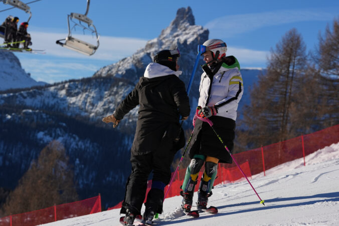South Africa's Lara Markthaler during a course inspection ahead of an alpine ski, women's slalom race, at the 2026 Winter Olympics, in Cortina d'Ampezzo, Italy, Wednesday, Feb. 18, 2026. Foto: SITA/AP