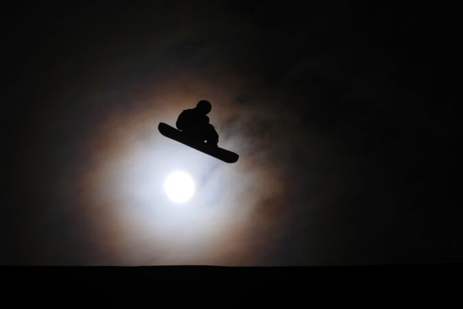 Japan's Ryoma Kimata practices before the men's snowboarding slopestyle finals at the 2026 Winter Olympics, in Livigno, Italy, Wednesday, Feb. 18, 2026. Foto: SITA/AP