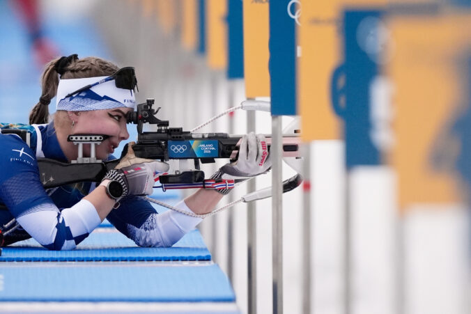 Noora Keranen, of Finland, participates in a biathlon training session at the 2026 Winter Olympics in Anterselva, Italy, Thursday, Feb. 12, 2026. Foto: SITA/AP
