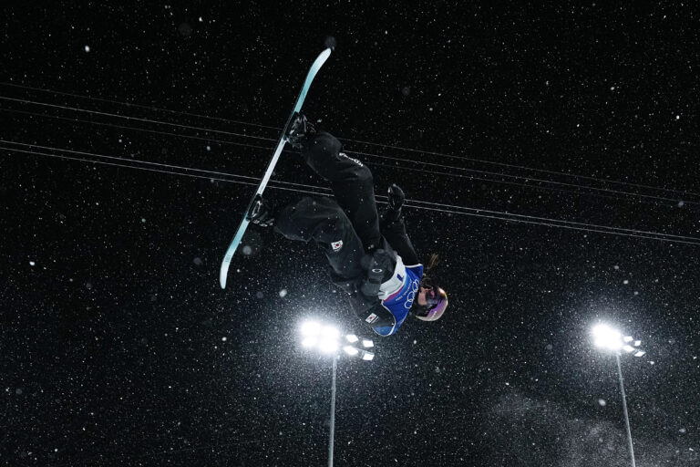 South Korea's Choi Ga-on competes during the women's snowboarding halfpipe finals at the 2026 Winter Olympics, in Livigno, Italy, Thursday, Feb. 12, 2026. Foto: SITA/AP