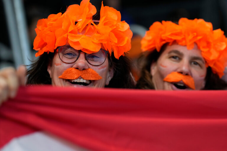 Dutch fans cheer during the women's 5,000 meters speedskating race at the 2026 Winter Olympics, in Milan, Italy, Thursday, Feb. 12, 2026. Foto: SITA/AP