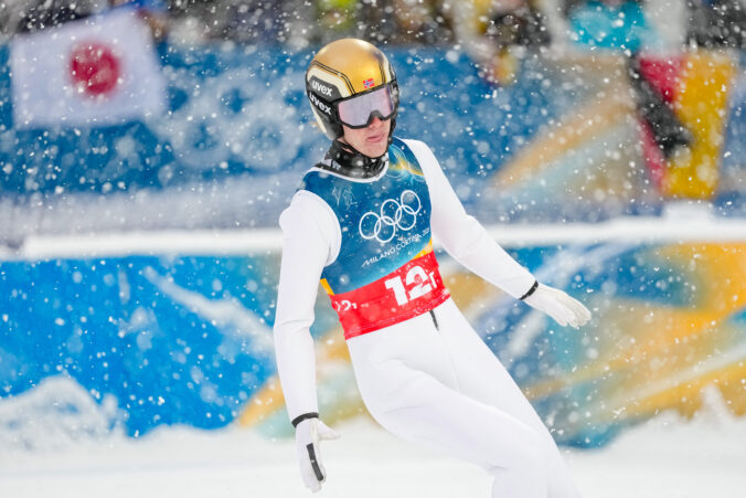 Andreas Skoglund, of Norway, reacts after his competition round jump of the nordic combined team sprint at the 2026 Winter Olympics, in Predazzo, Italy, Thursday, Feb. 19, 2026. Foto: SITA/AP