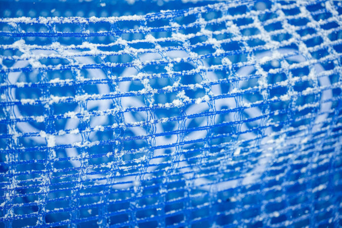 Snow gathers on a net fence at the ski jumping venue ahead of the nordic combined team sprint at the 2026 Winter Olympics, in Predazzo, Italy, Thursday, Feb. 19, 2026. Foto: SITA/AP