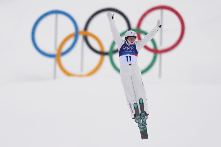 Australia's Airleigh Frigo practices before the women's freestyle skiing aerials qualifications at the 2026 Winter Olympics, in Livigno, Italy, Tuesday, Feb. 17, 2026. Foto: SITA/AP