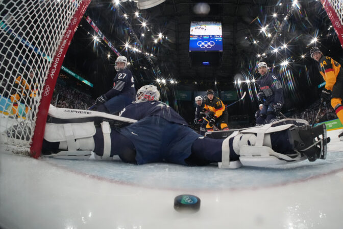 United States' Luc Violette raises his broom during the men's curling round robin session against China, at the 2026 Winter Olympics, in Cortina d'Ampezzo, Italy, Tuesday, Feb. 17, 2026. Foto: SITA/AP