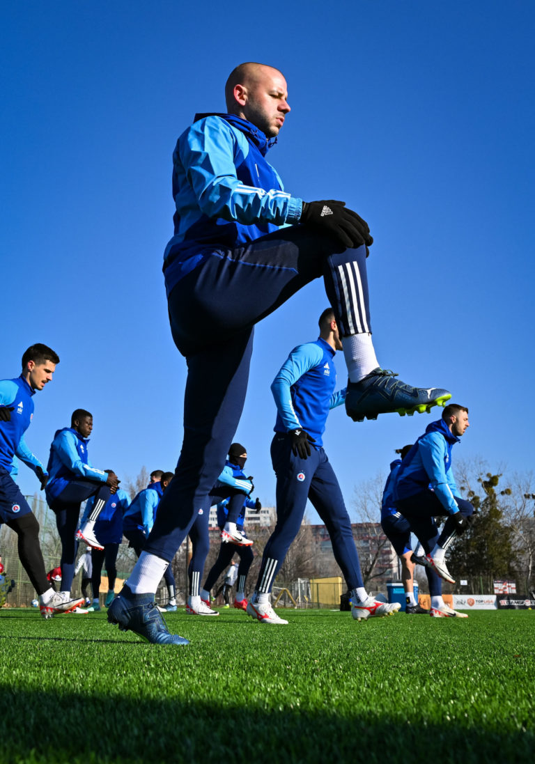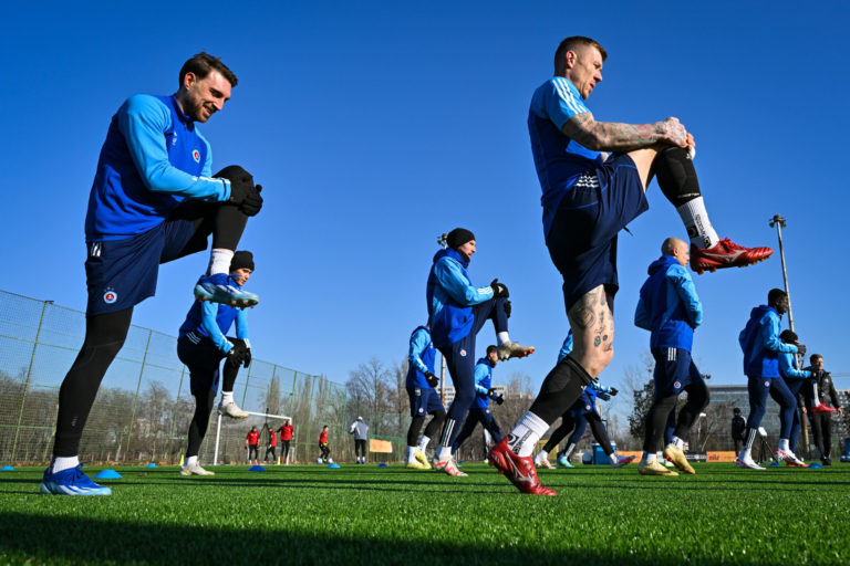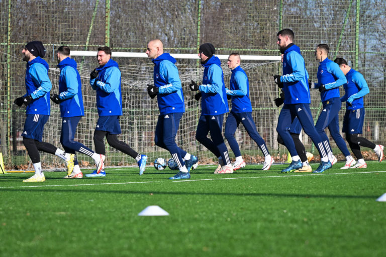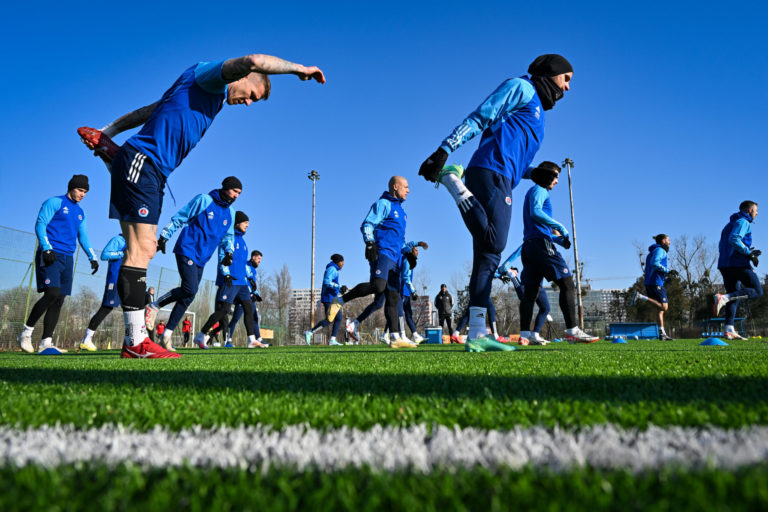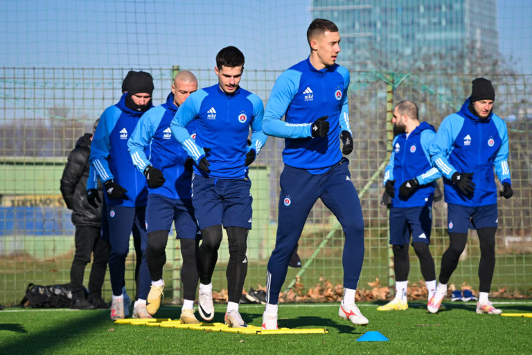 Hráči ŠK Slovan Bratislava počas prvého tohtoročného tréningu A-tímu na umelej tráve na Pasienkoch v Bratislave. Bratislava, 10. január 2024. Foto: SITA