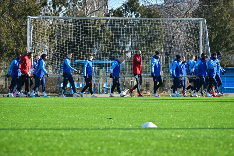 Hráči a realizačný tím ŠK Slovan Bratislava počas prvého tohtoročného tréningu A-tímu na umelej tráve na Pasienkoch v Bratislave. Bratislava, 10. január 2024. Foto: SITA