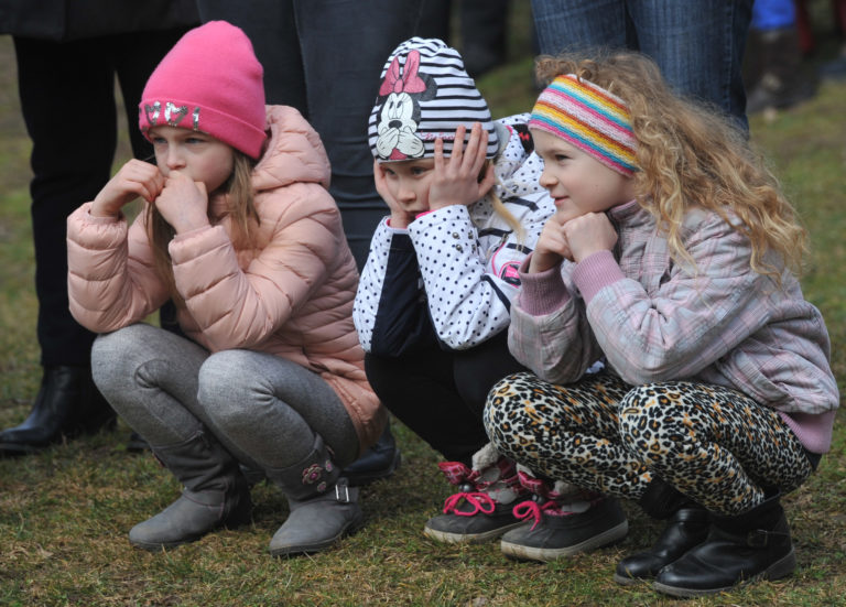 Deti sledujú živé zobrazenia poslednej cesty Ježiša Krista na Veľký piatok v rámci Veľkonočných sviatkov. Zobrazenia autentických zastavení Krížovej cesty začali na Hlavnej ulici a vyvrcholili ukrižovaním a pochovaním Ježiša Krista v Záhrade umenia. Prešov, 30. marec 2018. Foto: SITA/Viktor Zamborský.