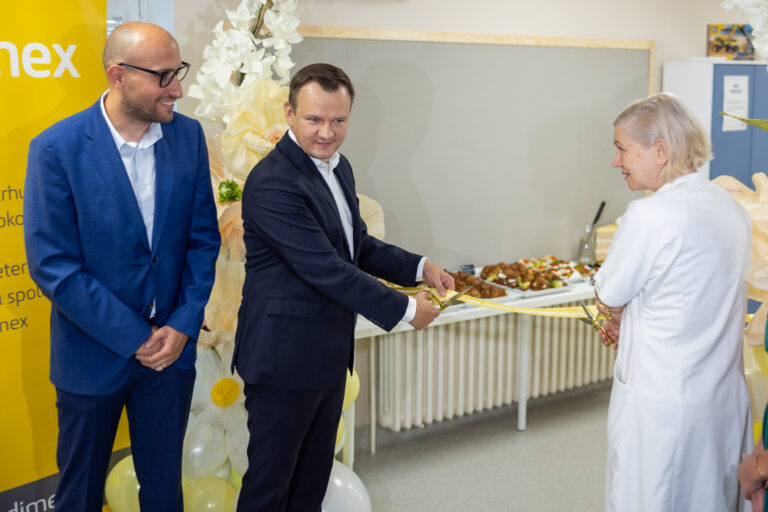 Slávnostné strihanie pásky počas odovzdania zmodernizovaného vzdelávacieho centra pre detských pacientov v Národnom ústave detských chorôb (NÚDCH) v Bratislave. Foto: Budimex