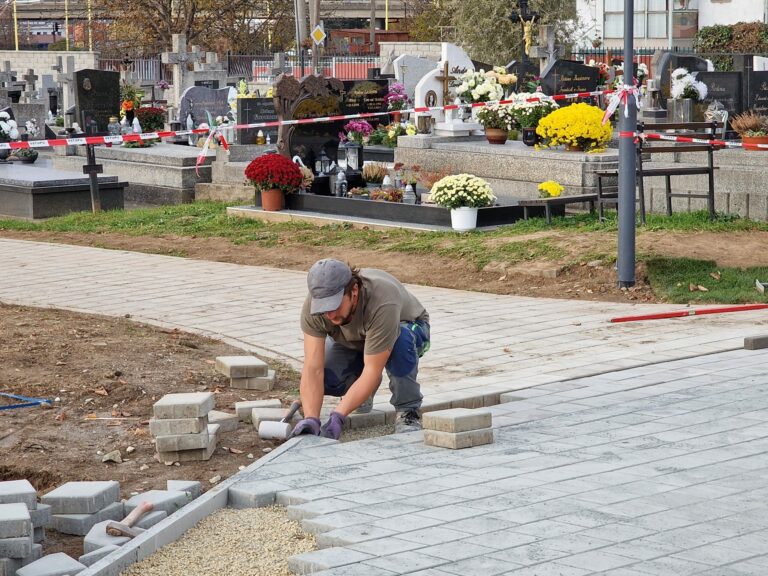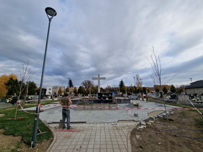 Stavebné práce na modernizácii cintorína v obci Ľubotice (okres Prešov) finišovali tesne pred sviatkami. Ľubotice, 1. novembra 2024. SITA/Ivan Kriššák. Foto: SITA/Ivan Kriššák