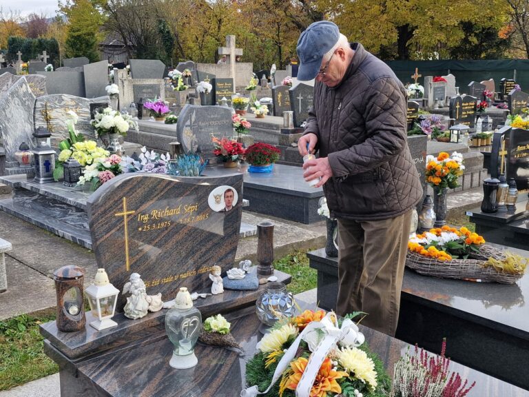 Na zmodernizovanom cintoríne v obci Ľubotice (okres Prešov) pribudla nová dlažba, chodník aj lavičky. Ľubotice, 1. novembra 2024. SITA/Ivan Kriššák. Foto: SITA/Ivan Kriššák