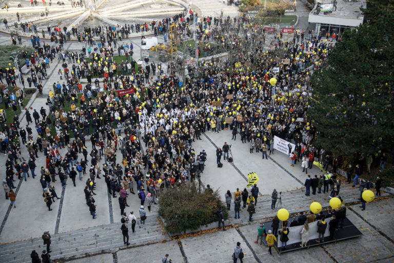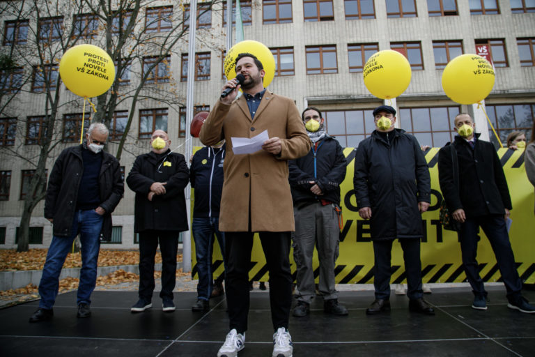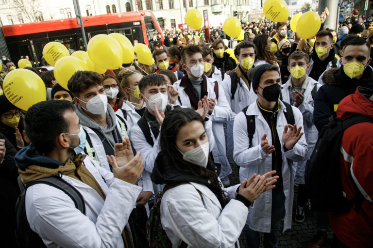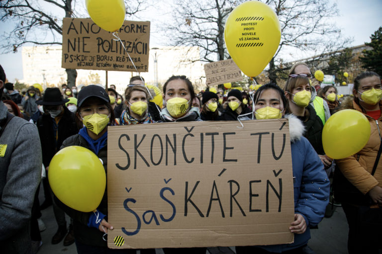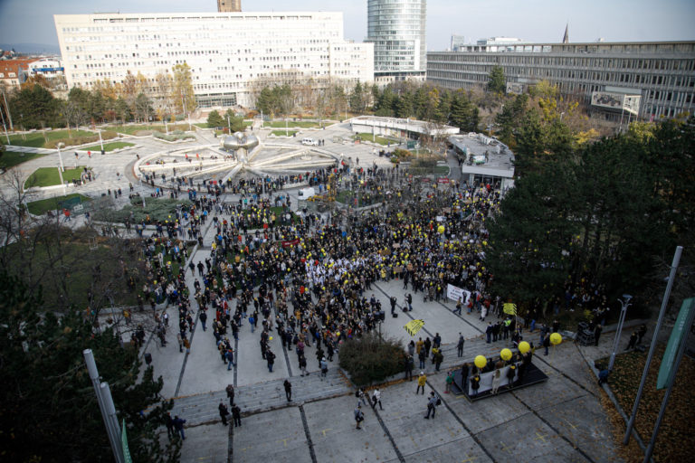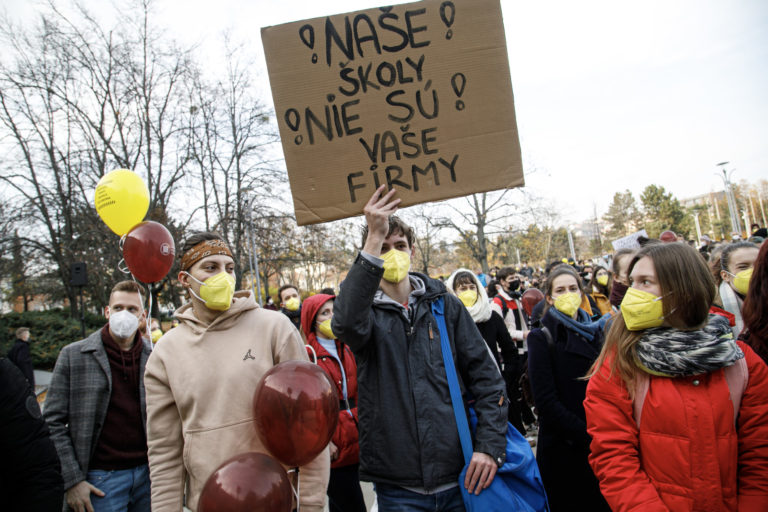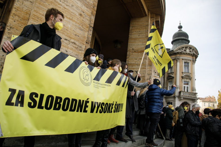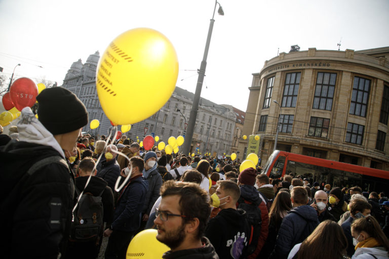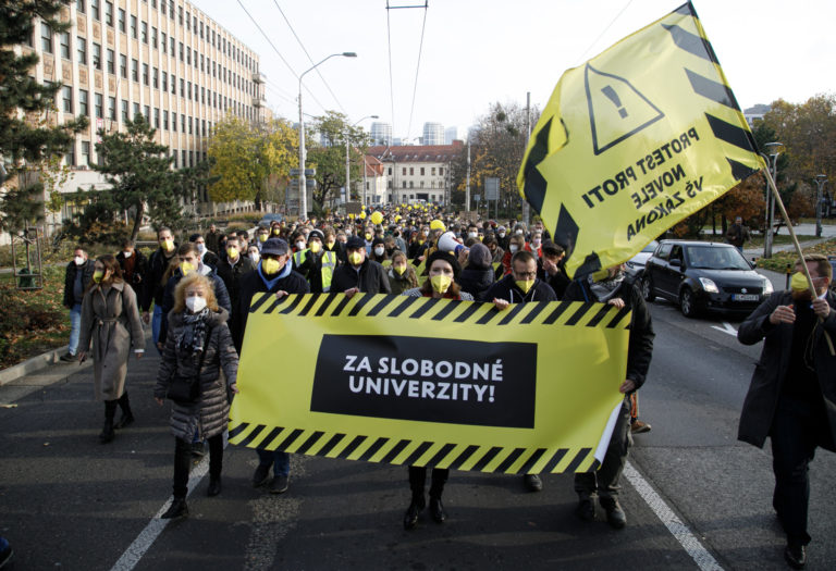 Účastníci počas protestného pochodu proti novele zákona o vysokých školách. Foto: archívne, SITA/Branislav Bibel