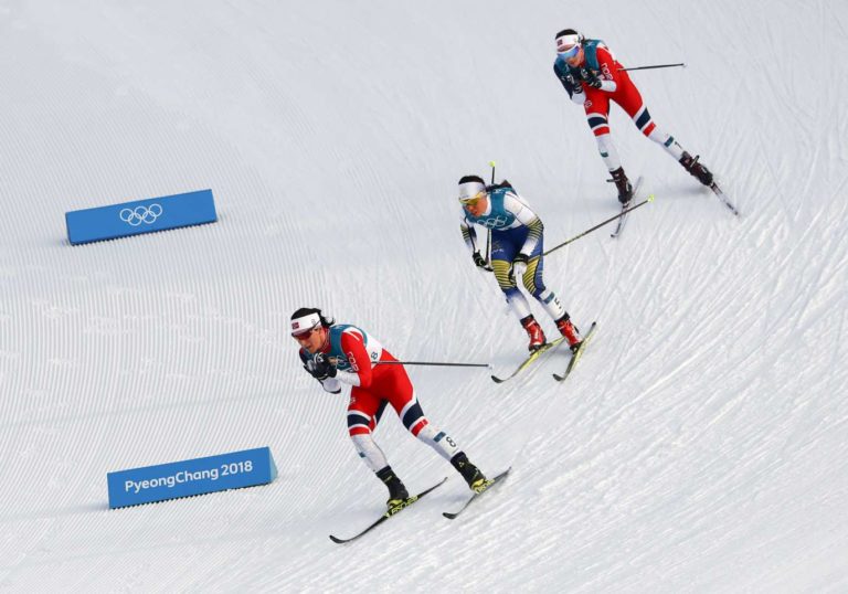 Olympijské preteky v behu na lyžiach na čele s Charlotte Kalla. 10. február 2018 Foto: SITA/AP
