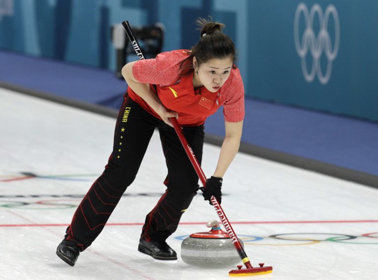 Číňanska Wang Rui počas zápasu v curlingu na ZOH 2018 v Pjongčangu. Foto: SITA/AP