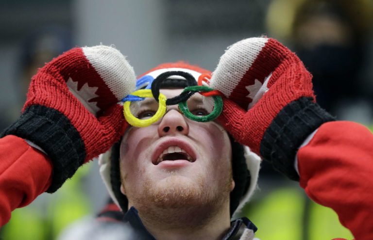 Kanadský fanúšik počas ZOH 2018 v Pjongčangu. Foto: SITA/AP