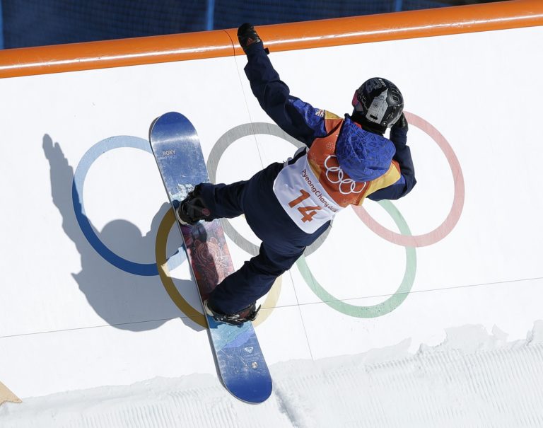 Američanka Chloe Kimová počas pondelkovej kvalifikácie snoubordistiek v súťaži na U-rampe. Pjongčang, 12. február 2018. Foto: SITA/AP.