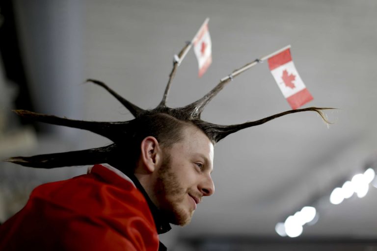 Kanadský fanúšik počas ZOH 2018 v Pjongčangu. 12. február 2018 Foto: SITA/AP