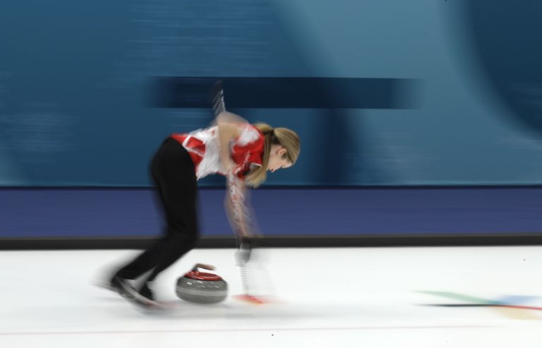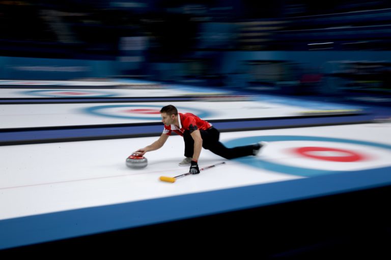 Kanadský reprezentant John Morris počas semifinálového zápasu turnaja miešaných párov. Pjongčang, 12. február 2018. Foto: SITA/AP.