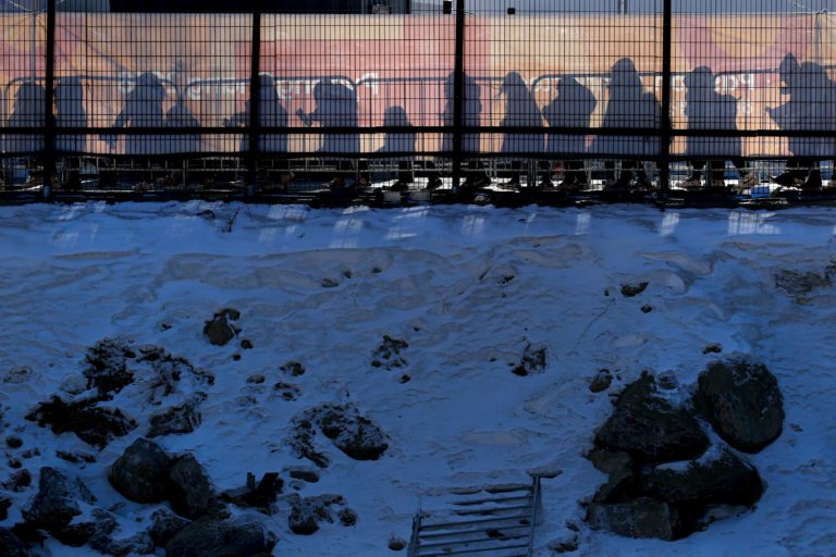 Fanúšikovia čakajú na vstup do PyeongChang Olympic Plaza počak ZOH 2018 v Pjongčangu. 12. február 2018 Foto: SITA/AP