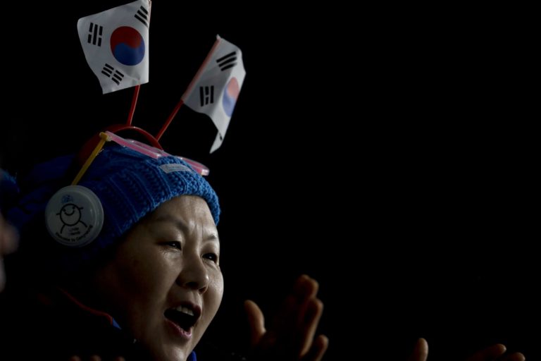 Juhoorejský fanúšik počas curlingového zápasu na ZOH 2018 v Pjongčangu. 12. február 2018 Foto: SITA/AP