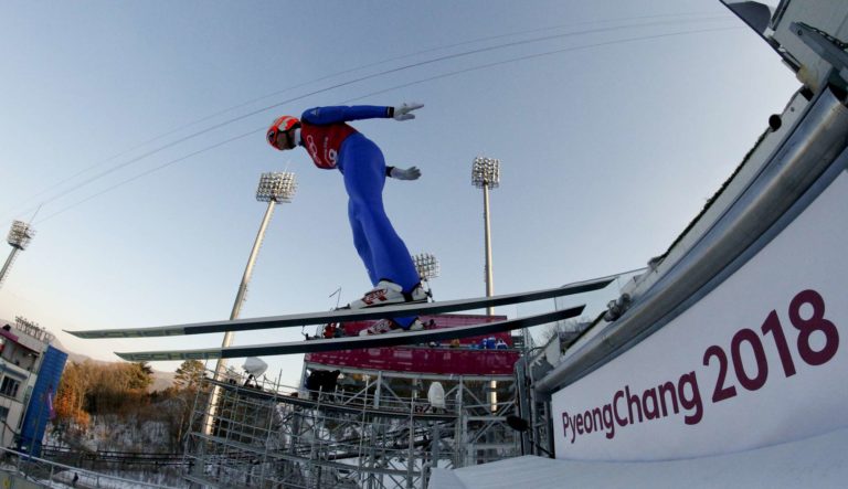 James Matheson z Austrálie skáče počas jeho jazdy na ZOH 2018 v Pjongčangu. 12. február 2018 Foto: SITA/AP