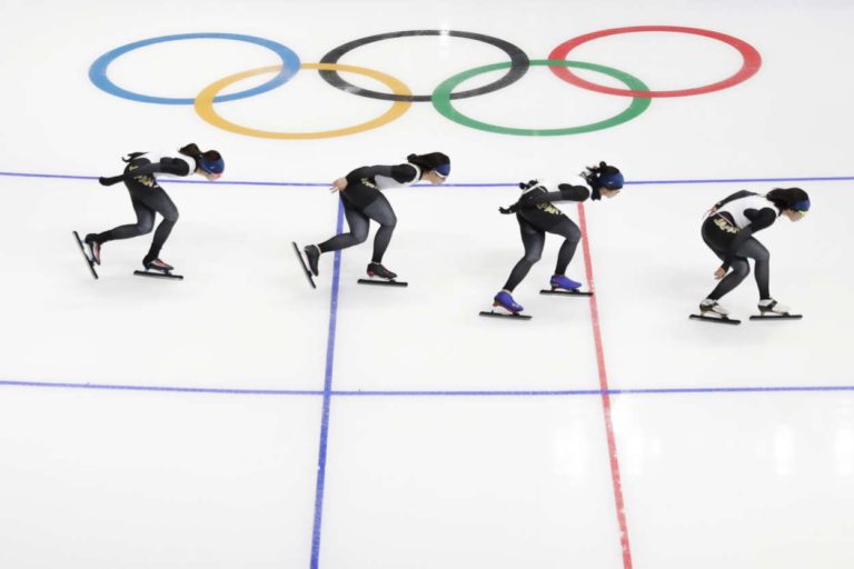 Japonskí rýchlokorčuliari počas ZOH 2018 v Pjongčangu. 12. február 2018 Foto: SITA/AP