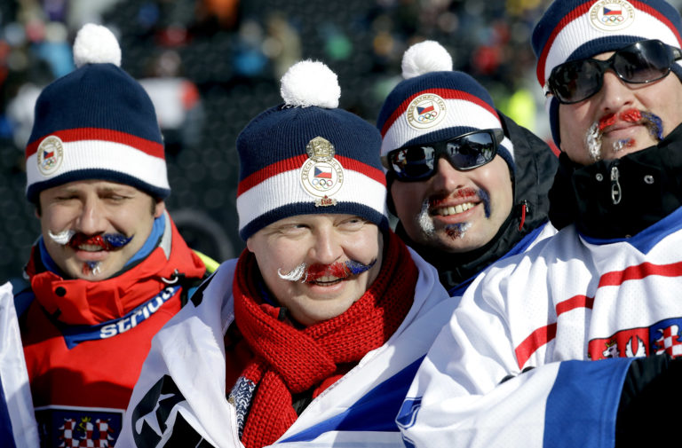Českí fanúšikovia počas finále slopestylu žien. Pjongčang, 12. február 2018. Foto: SITA/AP.