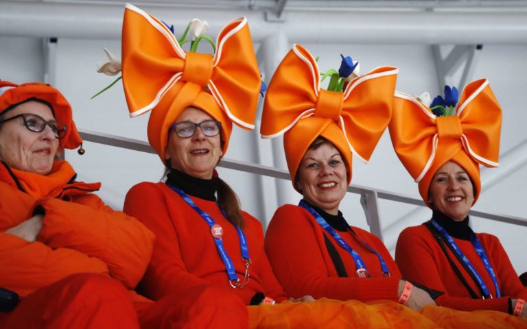 Fanúšikovia holandských krasokorčuliarov na ZOH 2018 v Pjongčangu. 12. február 2018 Foto: SITA/AP