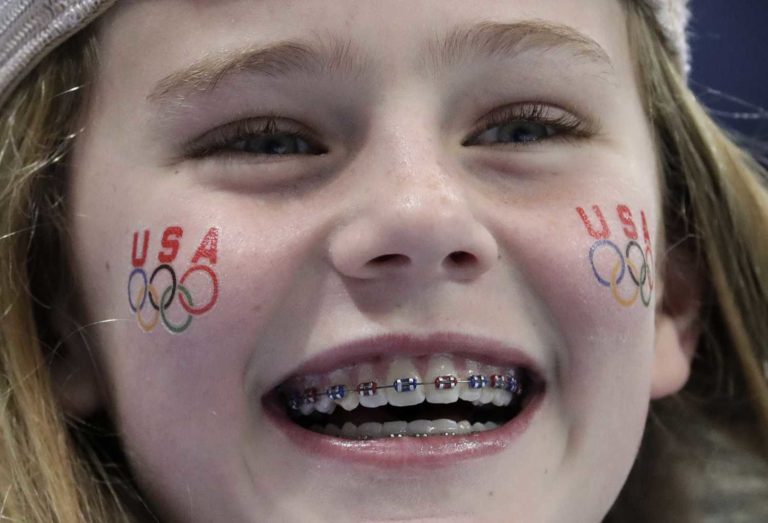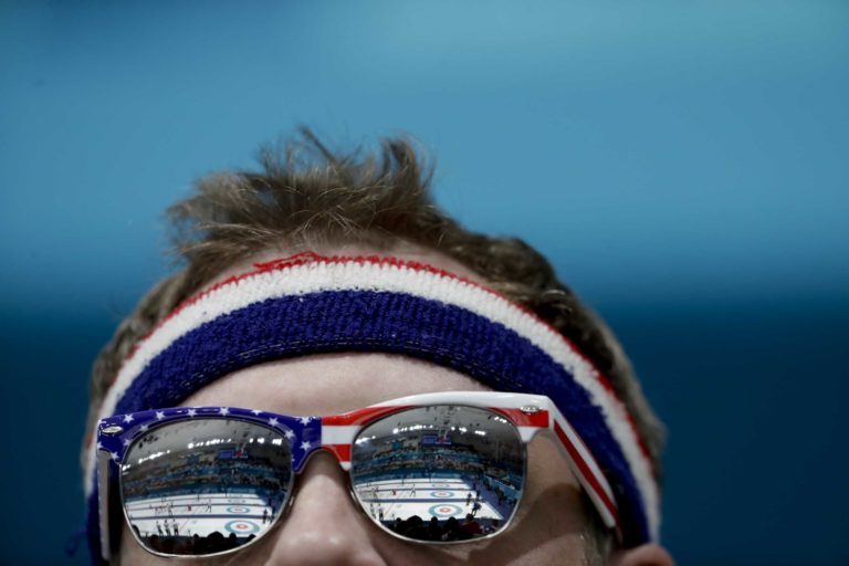 Americký fanúšik sleduje zápas curlingu na ZOH 2018 v Pjongčangu. 16. február 2018 Foto: SITA/AP