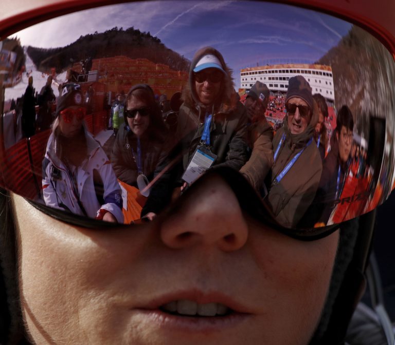Americká lyžiarka Mikaela Shiffrinová v cieli 2. kola slalomu žien, v ktorom skončila prekvapujúco štvrtá a nezískala medailu. Pjongčang, 16. február 2018. Foto: SITA/AP.
