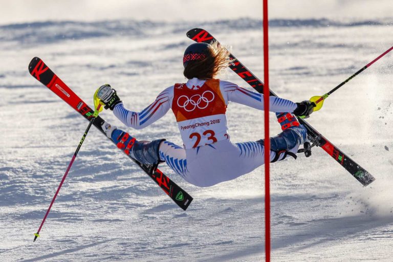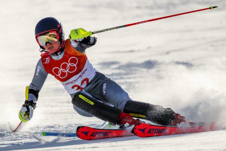Resi Stiegler z USA počas slalomu na ZOH 2018 v Pjongčangu. 16. február 2018 Foto: SITA/AP