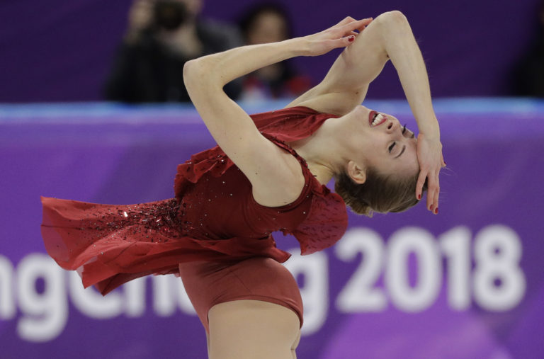 Maria Sotskova súťažiaca za tím Olympijskí športovci z Ruska počas programu na ZOH 2018 v Pjongčangu. 21. február 2018 Foto: SITA/AP