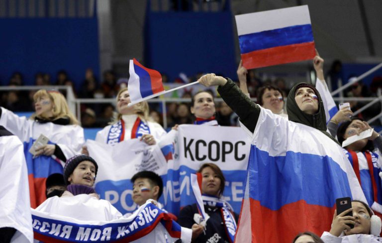 Ruskí fanúšikovia počas zápasu s Nórskom na ZOH 2018 v Pjongčangu. 21. február 2018 Foto: SITA/AP