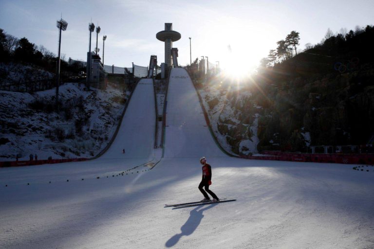 Magnus Krog z Nórska dokončil svoj skok na ZOH 2018 v Pjongčangu. 21. február 2018 Foto: SITA/AP