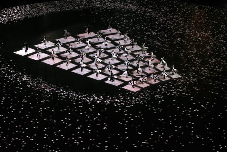 Tanečníci počas záverečného ceremoniálu ZOH 2018. Pjongčang, 25. február 2018. Foto: SITA/AP.