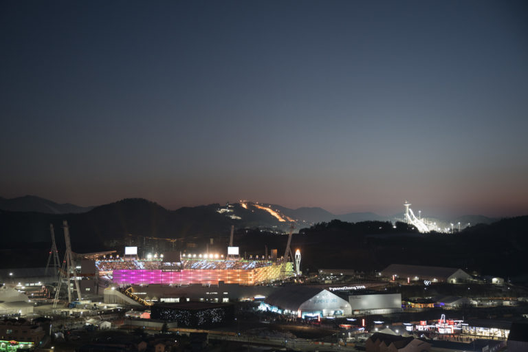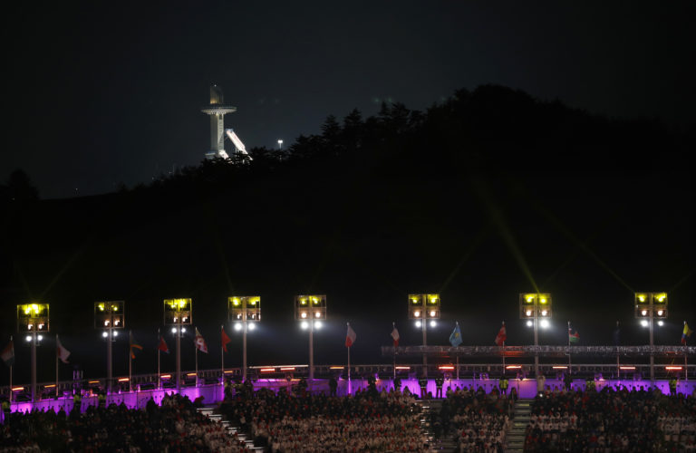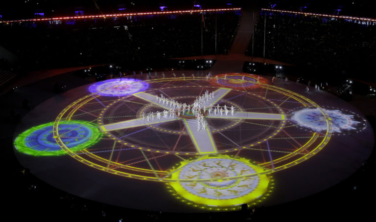 Olympijský štadión v Pjongčangu počas záverečného slávnostného ceremoniálu. Pjongčang, 25. február 2018. Foto: SITA/AP.