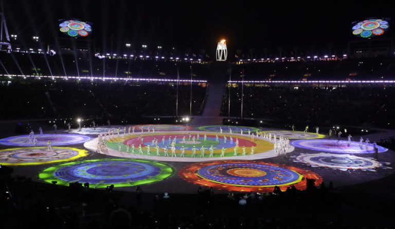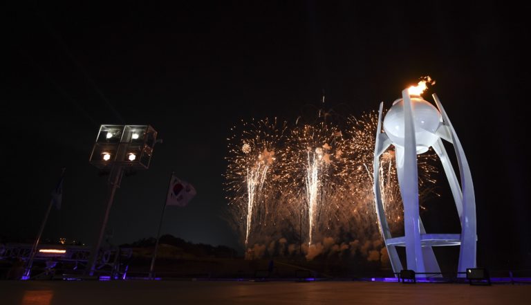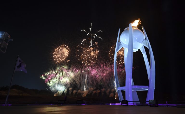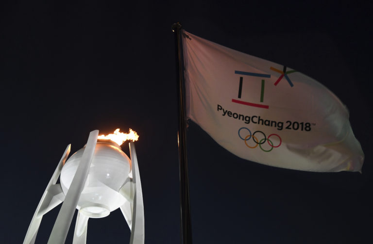 Olympijský oheň na zimných hrách v Pjongčangu. Pjongčang, 25. február 2018. Foto: Christof Stache/Pool Photo via AP.