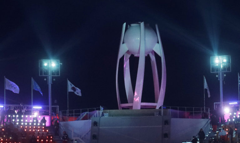 Zhasnutý olympijský oheň počas záverečného ceremoniálu ZOH 2018. Pjongčang, 25. február 2018. Foto: SITA/AP.