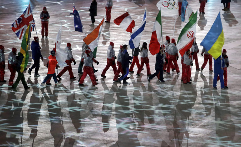 Športovci počas záverečného ceremoniálu ZOH 2018 v Pjongčangu, Pjongčang, 25. február 2018. Foto: SITA/AP.