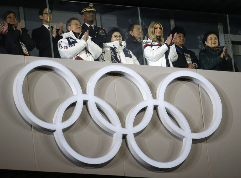 Ivanka Trumpová, dcéra amerického prezidenta Donalda Trumpa, počas záverečného ceremoniálu ZOH 2018. Pjongčang, 25. február 2018. Foto: SITA/AP.