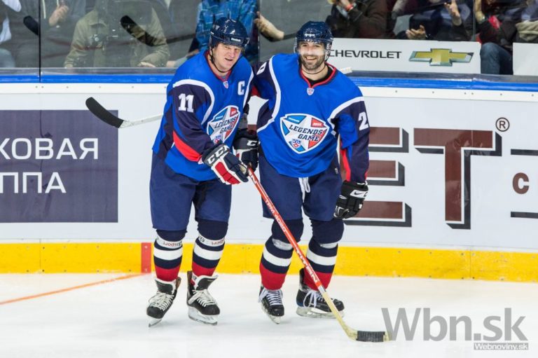 Bývalý výborný center Miroslav Hlinka (vpravo) je držiteľom kompletnej medailovej zbierky z majstrovstiev sveta. Zlato má z Göteborgu 2002, striebro z Petrohradu 2000 a bronz z Helsínk 2003. Jeho mŕtve telo našli v hotelovej izbe v Banskej Bystrici. Foto: SITA/Jozef Jakubčo