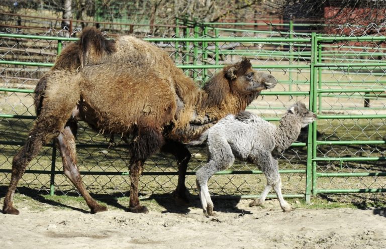 Stádo druhu ťava dvojhrbá (lat. Camelus bactrianus) v ZOO Košice sa rozšírilo o nový prírastok. Na snímke novonarodené mláďa. Košice, 12. marec 2014. Foto: zookosice.sk