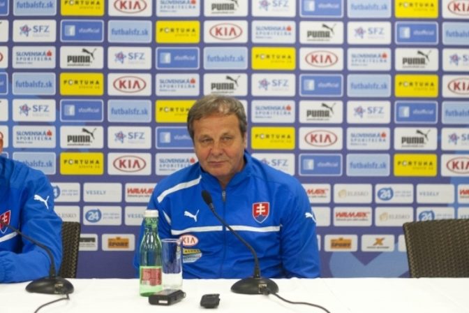 Tréner Ján Kozák počas tlačovej besedy s trénermi futbalovej reprezentácie SR pred záverečnými dvoma stretnutiami kvalifikácie MS 2014 v Grécku a Lotyšsku. Senec, 7. október 2013. Foto: SITA/Tomáš Bokor