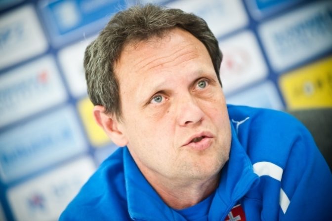 Asistent trénera A-tímu Štefan Tarkovič počas tlačovej konferencie na zraze slovenskej futbalovej reprezentácie pred medzištátnym prípravným zápasom v Izraeli. Senec, 2. marec 2014. Foto: SITA/Ján Slovák