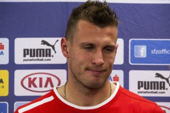Futbalista Norbert Gyömbér na zraze slovenskej futbalovej reprezentácie na prípravný kemp pred blížiacim sa zápasom proti Macedónsku. Senec, 3. jún 2015. Foto: SITA/Ján Slovák