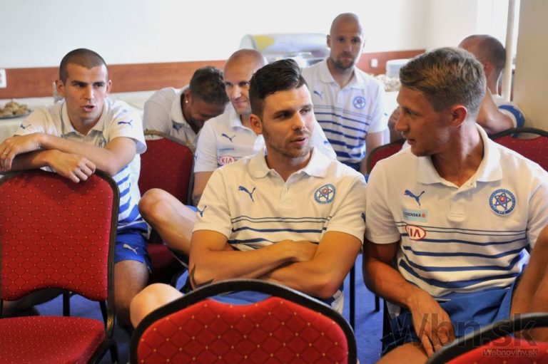 Sprava: Futbalisti Jakub Sylvestr, Michal Ďuriš a Viktor Pečovský (vľavo vzadu) počas zrazu slovenskej futbalovej reprezentácie na prípravný kemp pred blížiacim sa zápasom proti Macedónsku. Senec, 3. jún 2015. Foto: SITA/Ján Slovák