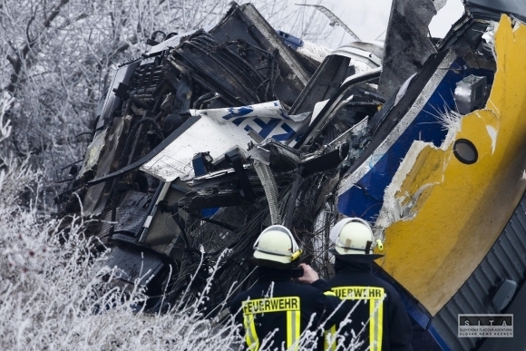 V nemeckej spolkovej krajine Sasko-Anhaltsko sa v noci zo soboty na nedeľu čelne zrazil osobný vlak s nákladným. Pri nehode zomreli desiati ľudia, asi štyridsiati sa zranili. Foto: SITA, AP